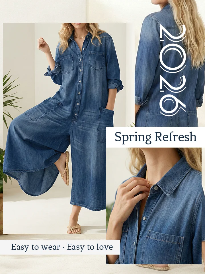 Finally found a jumpsuit that’s stylish without being restrictive! The large pockets add a cool, casual vibe, and the wide-leg cut is amazing for slimming the silhouette. The washed blue is the perfect vintage shade. I get so many compliments wearing this out—it's the ultimate lazy-chic outfit!