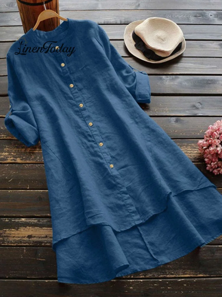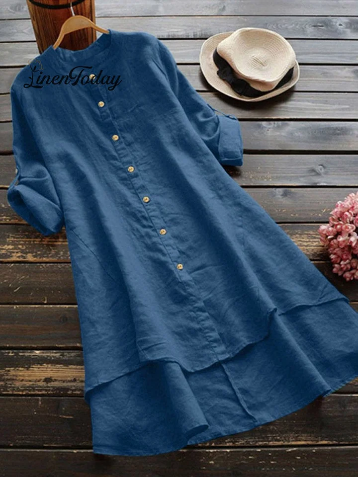 Women's Solid Color Loose Elegant Casual Cotton And Linen Shirt Dress